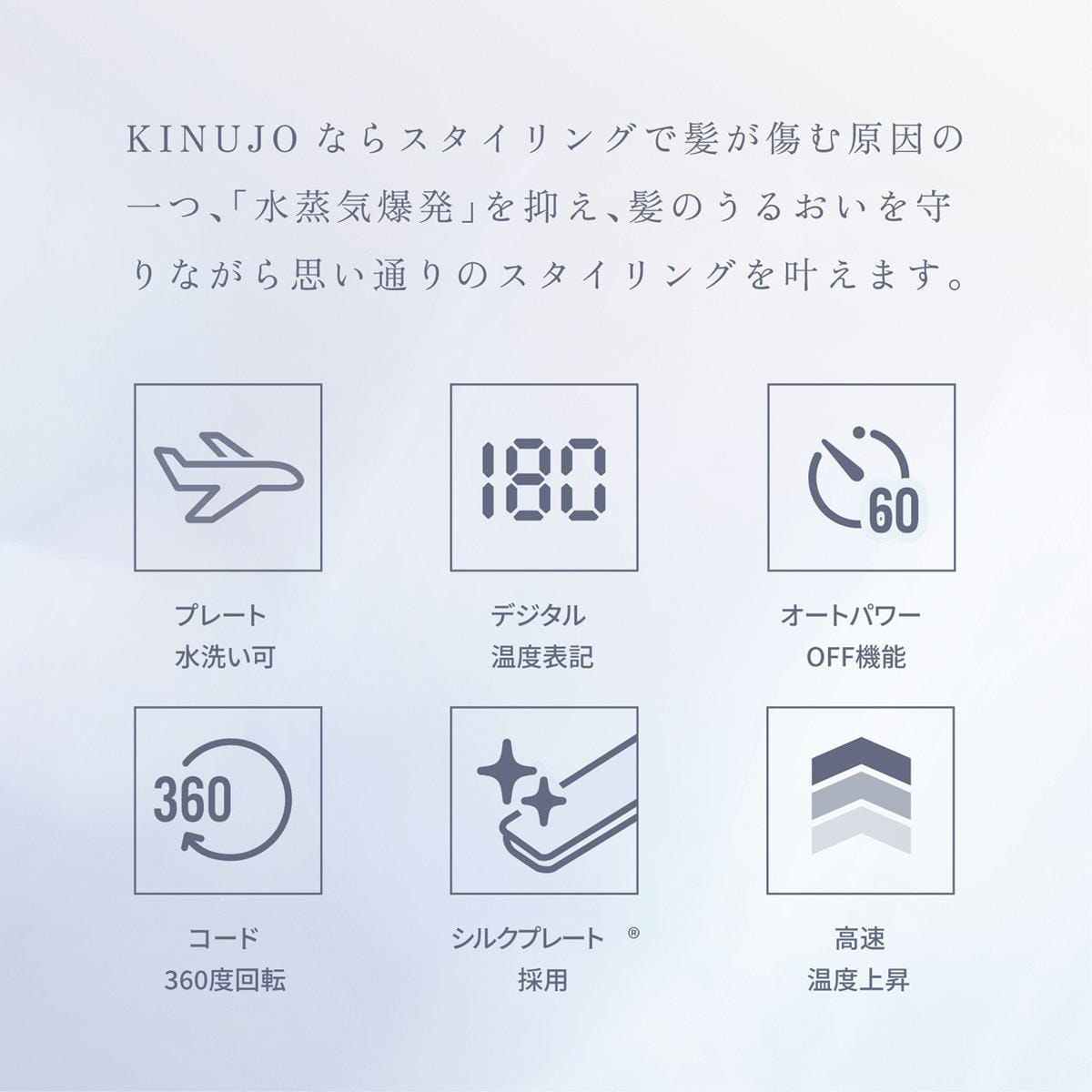 独自開発のシルクプレートは、200℃に温めた状態で水分を吹きかけても瞬間蒸発せず髪の水分を守ることができます。