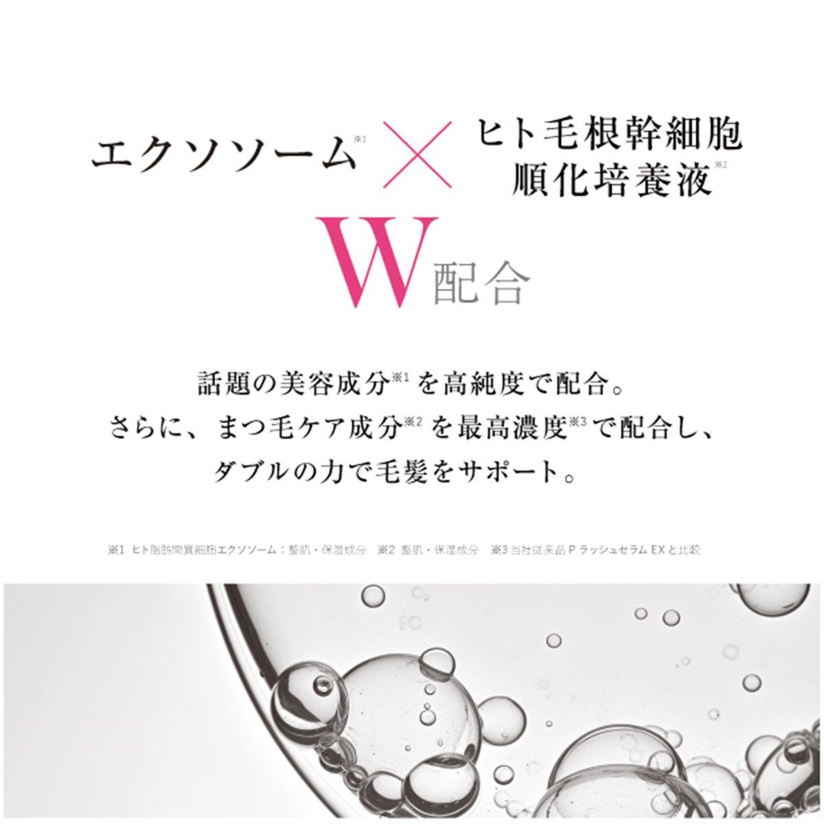 ■エクソソーム*¹×ヒト毛根幹細胞順化培養液*² W配合。